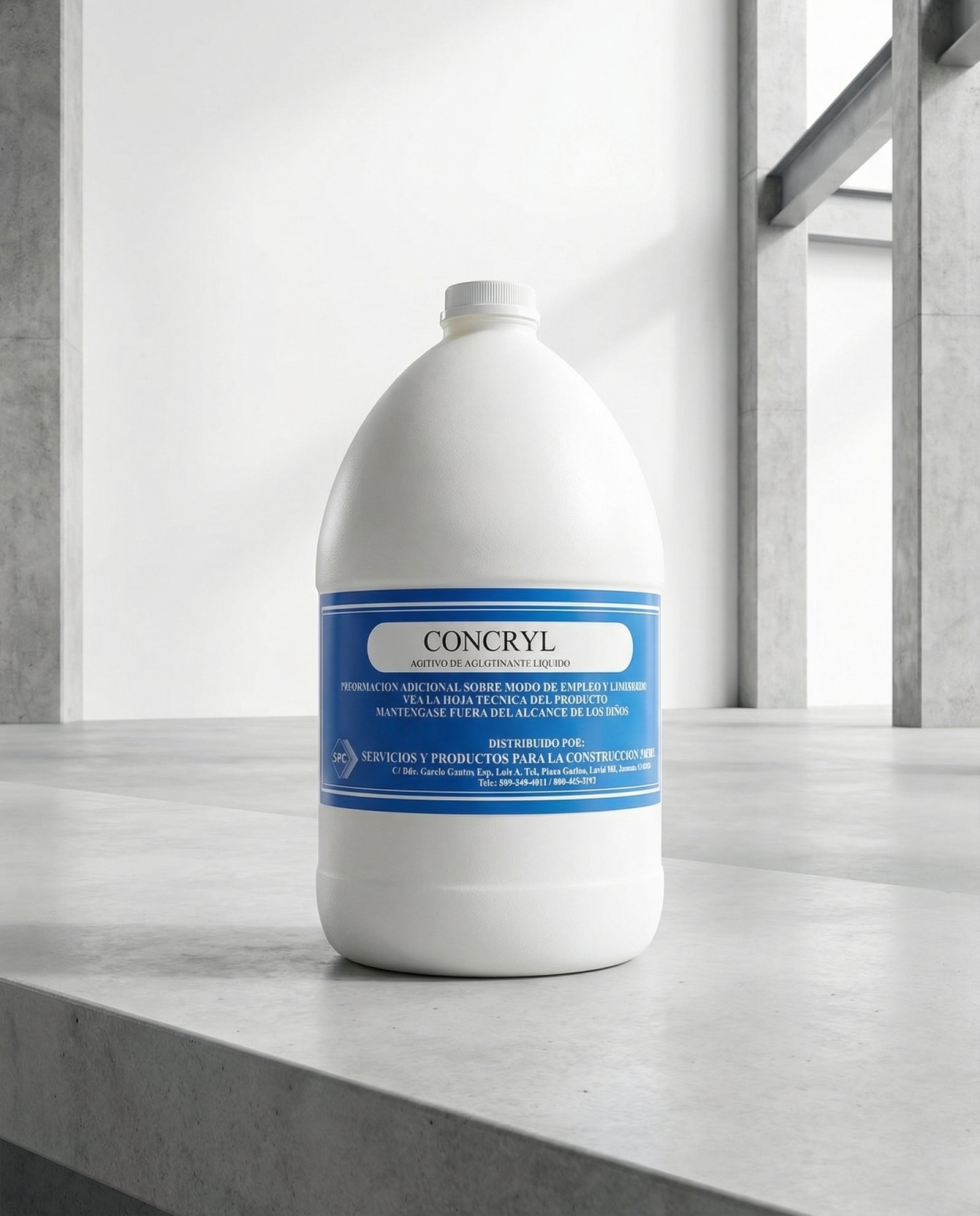 Concryl se envasa en tambores de 55 galones (208 L), cubetas de 5 galones (18.9 L) y cajas de 6 botellas de plástico de 1 galón (3.79 L).